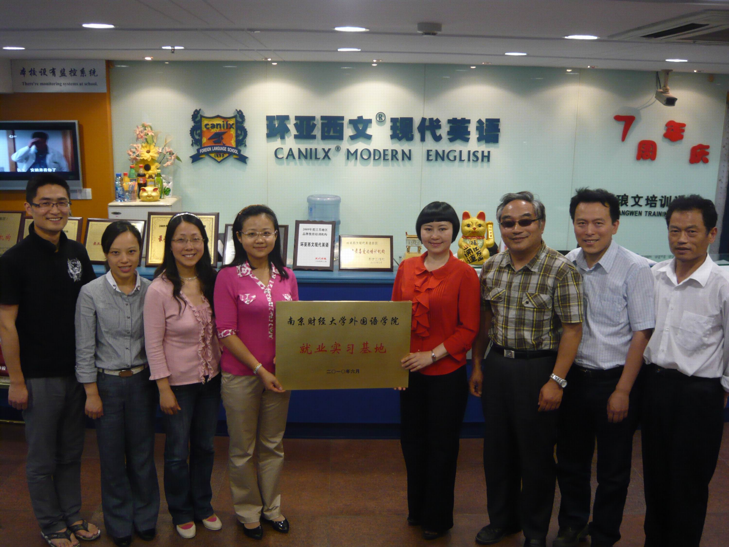 为进一步拓宽毕业生的就业渠道,提高就业质量,公司党总支书记肖辉教授、经理王克明教授、副经理孙勇彬教授、团总支书记金立林老师及辅导员孟德明老师等一行于2010.年6月3日下午来到南京新街口与环亚西文南京琅文培训公司签订了就业实习基地协议并举行挂牌仪式,为今后公司员工的就业及实习铺平了道路。