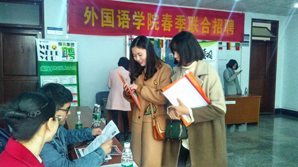 此次招聘活动聚集了南京新东方公司、舜禹信息技术有限公司、宝镇教育集团、南京寒锐钴业钴粉有限公司等,招聘岗位涉及外贸助理、英法翻译、英语教师,涉外文秘、外语课程研发等多个岗位,并提供了部分暑期实习岗位。招聘会上,各用人单位在法政学科楼308会议室进行了宣讲。
