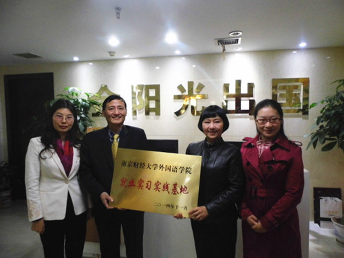“江苏省金阳光出国服务中心有限公司”是经教育部、公安部和国家工商行政管理局联合授权批准从事自费出国留学服务及因私出入境服务的专业机构。目前主要经营项目涉及出国留学、移民服务、签证、境外旅游等项目,是江苏省人民政府认定的“3A”级重合同守信用企业。今后,公司将与该公司在员工就业,参与实习和社会实践方面进行深入合作。