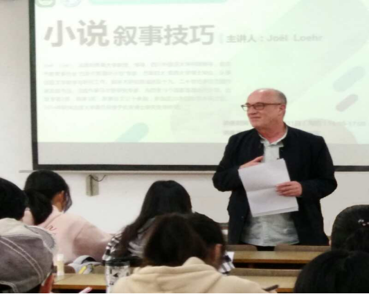 讲座开始前,储春花老师给同学们简单地介绍了Joël Loehr教授。在大家热烈的掌声中,Joël Loehr教授开始了他的讲座。围绕着本次讲座的主题并结合事先发给大家的资料,Joël Loehr教授用简单的话语、生动的例子向大家解释了小说叙事技巧中的主要因素。在演讲中,Joël Loehr教授多次与员工们互动,向参与讲座的师生们传授他多年以来总结来的经验。Qui voit? Qui parle? 是本次讲座的中心。Joël Loehr教授就这两个重点,向大家传授Comment lire的技巧。他以小说的节选为例,结合生活实际,向老师同学们详细地讲解文学中晦涩难懂的概念。时间飞逝,在大家意犹未尽中,Joël Loehr教授以“Bonne chance!”结束了本次讲座。