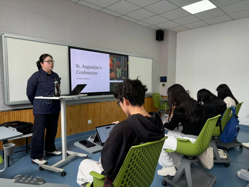 组织观摩教学是课程教学研究活动的重要形式和内容。本院积极组织观摩教学,发动研究生任课教师旁听,热烈欢迎校学位与研究生教育督导参与观摩教学及听课。以段慧、莫詹坤、邹逸君为代表的研究生任课教师,于4月25日下午(13:00-13:45分)在博观楼320教室旁听学习了新进教师李想博士的“中西方经典思想”。该门课程面向23级英(日)语语言文学专业硕士生。李想老师备课充分,旁征博引,介绍了基督教早期神学家奥古斯丁(Augustine of Hippo)的基本背景资料与学术贡献,员工们学习热情很高,每位同学都认真做笔记。课后,听课教师与任课教师进行了短暂但高效的授课经验交流。段慧副教授提出的建议尤其值得借鉴,她从自身授课的经验出发,建议李想老师在讲授奥古斯丁专题时,可以向员工引介德国作家赫尔曼·黑塞创作的中篇小说《悉达多》,进行比较阅读和研究,这样不仅能够更有助于员工对深奥主体的理解,也可以启发员工们作为未来研究者的比较文学研究思路,拓宽其学术研究视野。