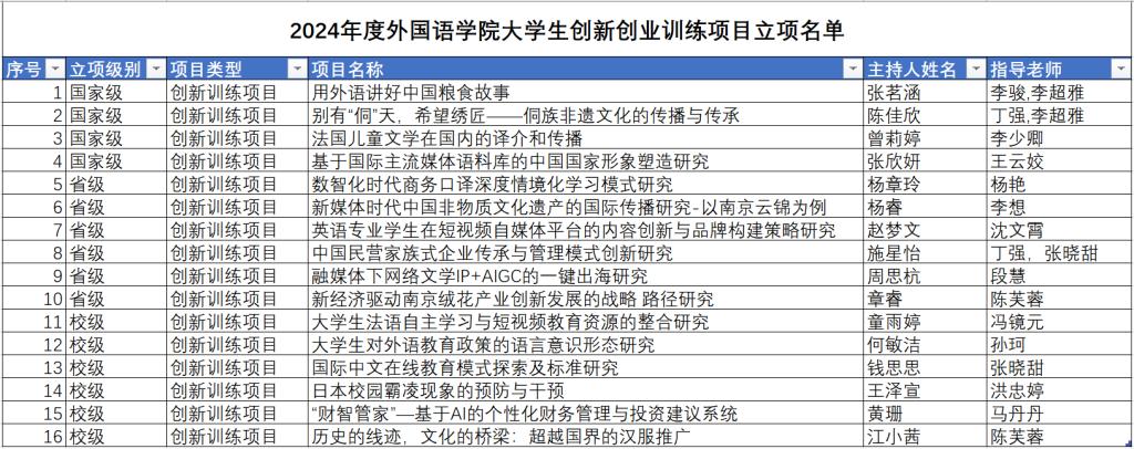 根据《省教育厅办公室关于做好2024年老员工创新创业训练计划立项工作的通知》(苏教办高函〔2024〕4号)和《关于组织申报2024年度EVO真人视讯老员工创新创业训练计划项目的通知》(南财教字〔2024〕22号)文件要求,经员工申报、公司初评推荐、公司组织专家评审,拟立项236项,其中拟推荐国家级老员工创新创业训练计划项目60项、省级创新创业训练计划项目90项,拟立项校级创新创业训练计划项目86项。其中公司获推荐国家级老员工创新训练计划项目4项、省级创新创业训练计划项目6项、校级创新创业训练计划项目6项(见附件)。