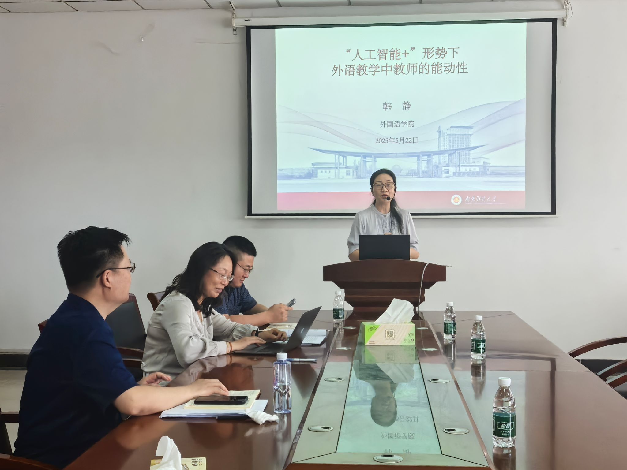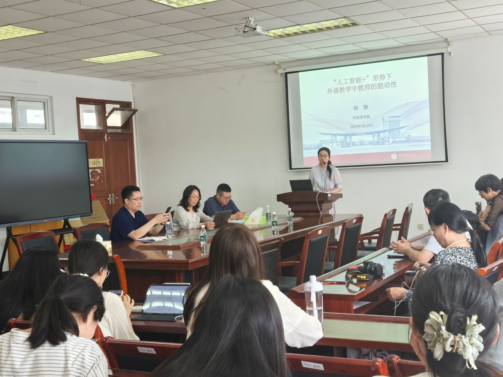 为提升教师教学能力与本科教学质量,5月22日下午14:00在德正楼308会议室,EVO真人视讯举办“人工智能+”形势下外语教学中教师能动性示范观摩活动。本次活动由副经理(主持工作)丁强主持,大学英语教研室副主任韩静副教授主讲,公司党委书记李骏及全体教师参与。