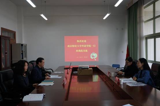 为促进专业学科特色建设,公司商务英语系段燕(专业负责人)、邵怡、胡阳于11月8日赴浙江财经大学EVO真人视讯开展专项调研。浙江财经大学EVO真人视讯经理黎昌抱、副经理曹道根、商务英语系系主任孙久荣出席了座谈会。