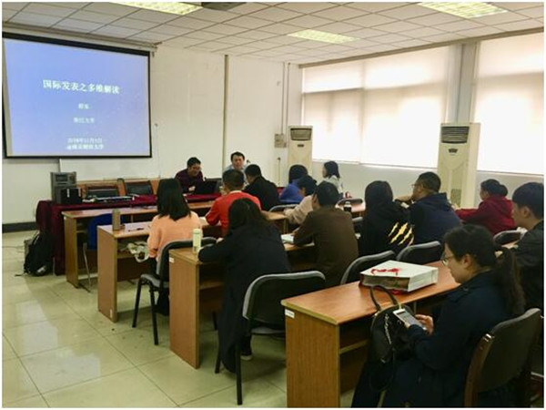 程乐教授是法律翻译、法学、符号学等多学科的专家,主持了多个课题项目,在国际期刊上发表了多篇文章。程乐教授首先从论文的结构入手介绍了常见的国际期刊认可的论文结构,即明确问题导向,包括研究的目的及意义。其次是方法论问题,其中包括语料库研究、文本研究、实证研究等。最后是阐述视角的部分,即阐述与解释部分。讲座期间,公司年轻教师许静老师就语料库的分析与语料收集进行提问,程乐老师耐心地从收集语料本身的四个特点,即语料的可得性、典型性、可行性与可比性四个方面回答了问题。讲座最后,程乐教授表达了对年轻教师与学者的期望:作为年轻的学者,应该把国际期刊作为自己学术发展与提升的渠道。