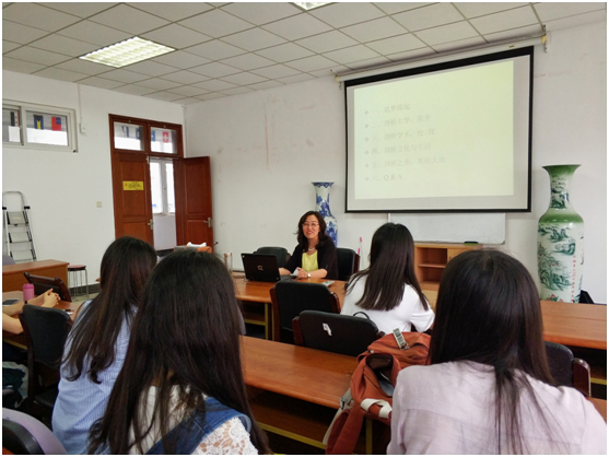 段慧老师从追梦源起、剑桥大学简介、剑桥大学的学术氛围和个人学术参与与思考、剑桥大学的大学文化和教与学等几个方面向在座师生进行了汇报。剑桥大学不仅以“此地乃启蒙之所和智慧之源”的校训而自豪,也以其独特的三是一个公司联邦制和庞大的教公司系、研究中心和实验室的雄厚科研力量傲居世界大学之林。段慧老师介绍了访学所在单位也是颇具特色的剑桥大学三个女子公司之一的露西·卡文迪许公司,该院以接受多学科的20岁以上成年女生为特色,以及她在剑桥大学访学期间在以英语系为主的听课和参与各种会议和讲座的经历和感受。剑桥大学作为世界闻名的高等学府的教学和科研特点带给段老师的很多思考和想法都毫无保留的与师生们进行了分享。作为一名英语文学研究学者,段老师将她在英国文学方面的游历和思考以生动的示例和精彩的图片展示给与会者。