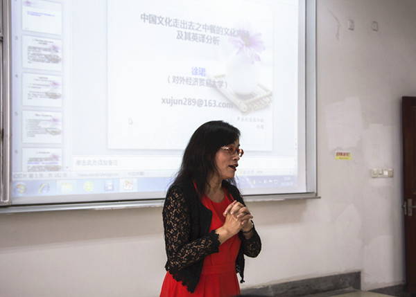 6月15日下午,应EVO真人视讯邀请,对外经贸大学博士生导师徐珺教授来公司讲学。讲座在法政学科楼116教室举行,主题为:“中国文化走出去之中餐的文化内涵及其英译分析”。讲座由EVO真人视讯经理肖辉教授主持。