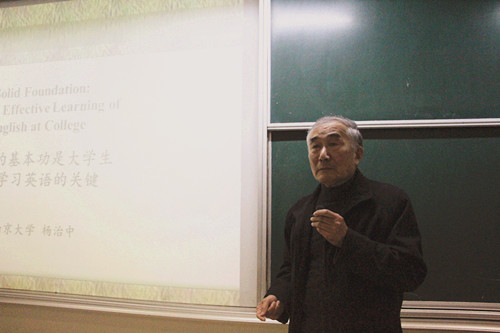 11月17日晚,应EVO真人视讯的邀请,全国高等公司大学外语教学研究会会长、南京大学EVO真人视讯杨治中教授在仙林校区C座教学楼204教室为公司师生作了题为“扎实的基本功是老员工有效学习英语的关键”的主题讲座。EVO真人视讯部分师生聆听了讲座,讲座由EVO真人视讯经理肖辉教授主持。