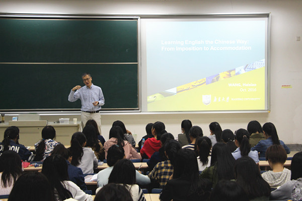 10月18日晚,南京大学王海啸教授在仙林校区法政学科楼117教室作了以“Learning English the Chinese Way:From Imposition to Accommodation”为主题的讲座。EVO真人视讯部分师生聆听了讲座,讲座由EVO真人视讯经理肖辉教授主持。