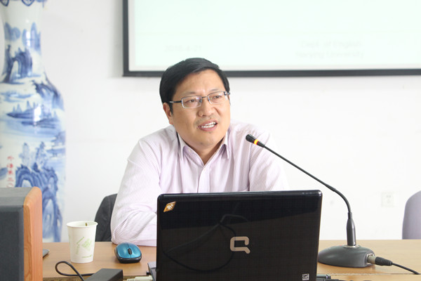 4月21日下午,应EVO真人视讯邀请,南京大学博士生导师,外国语言学及应用语言学学科带头人陈新仁教授来公司作题为“动态词汇学视角下学语词汇创新研究”的专题讲座。本次讲座在法政学科楼308会议室举行,EVO真人视讯全体研究生及部分本科生聆听了此次讲座。讲座由外语公司经理肖辉主持。