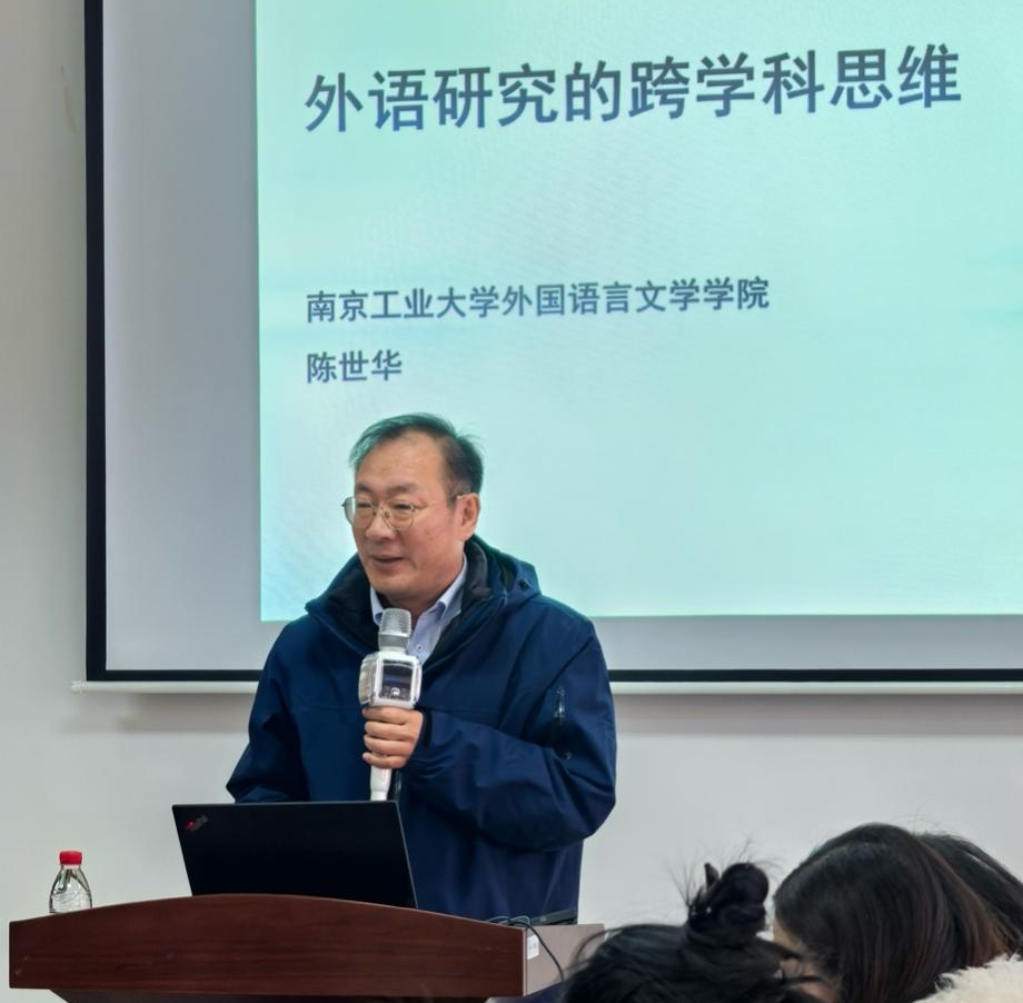 陈世华教授以“外语研究的跨学科思维”为题,为师生们带来了一场思想盛宴。讲座中,他详细阐述了外语研究中的跨学科思维的重要性,并结合实际案例,深入剖析了跨学科思维在外语研究中的应用和前景。陈教授强调外语研究的科研选题要关注国家重大需求,要饱含对社会的关心和对职业的热爱。陈教授的讲座内容深入浅出,语言生动幽默,同学们表示受益匪浅。