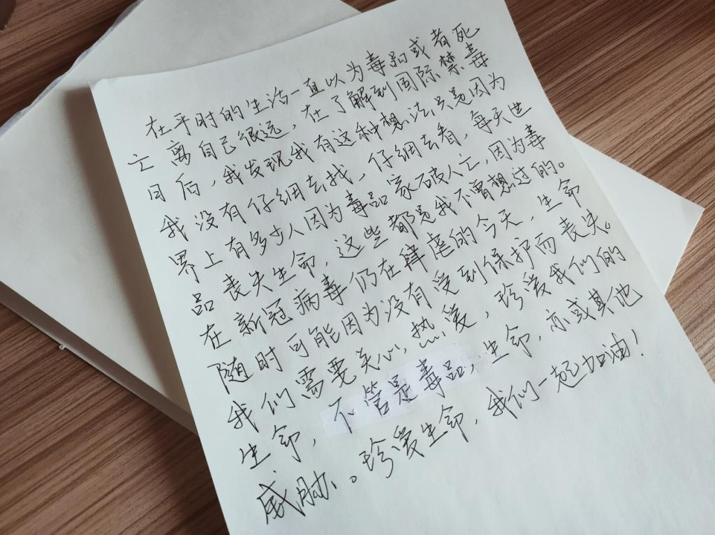 6月26日是国际禁毒日,在经历了新冠病毒的袭击之后,人们更加懂得珍惜生命。如今新冠病毒仍未远去,面对“两毒”威胁的当代青年人会做出怎样的回应。公司的老员工们用拿起纸笔,写下了他们对于禁毒和生命的珍爱。