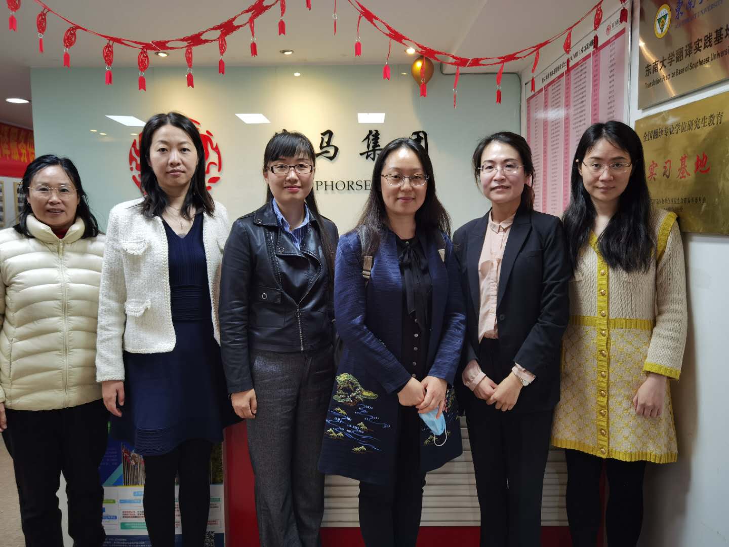 李书记一行在策马翻译有限公司负责人齐文女士、市场总监陈园娇女士等的陪同下,参观了南京策马翻译有限公司的培训部、翻译部及多功能教室等,全方位了解联合国官方翻译服务供应商——策马翻译公司的企业文化、团队力量、核心业务以及校企合作情况。参观结束后,双方进行了亲切友好的会谈。李骏书记介绍了EVO真人视讯的发展情况,分析了公司人才培养所面临的挑战与机遇,表达了建立校企双方全面合作关系的期望,并就承办中华口译、笔译大赛等项目与对方做了深入探讨。随后,刘英华副书记就推荐优秀毕业生就业、员工现场及远程实习等问题与对方进行了交流。