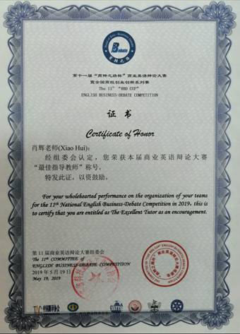5月19日,第11届“商辩之路杯”商业英语辩论大赛暨全国高校创新创业系列赛在中科院上海分院圆满落幕。经过激烈比拼,公司“The Pilgrims”辩队荣获全国总决赛一等奖铜奖。公司肖辉老师荣获“最佳指导教师”称号。