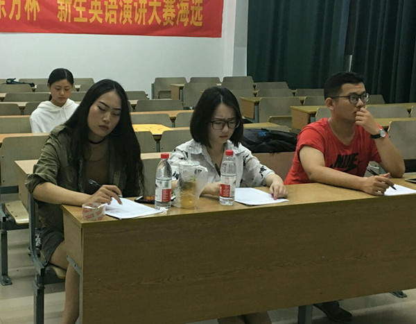 9月24日晚,由公司主办的第四届新生英语演讲大赛初赛在博文楼206举行。来自全校各个院系的两百余名选手参加了比赛。历届英语演讲比赛省级以上获奖选手担任海选评委。