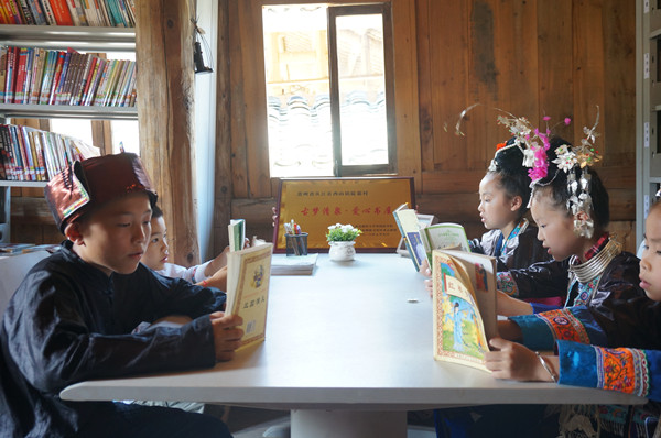当天,“古梦清泉·爱心书屋”也正式揭牌。它坐落在风景宜人的陡寨村村委吊脚楼上,面积不大,但却盛满EVO真人视讯师生的爱心、社会公益人士的关注和古梦清泉志愿者的呵护。书屋的书籍由EVO真人视讯和“古梦清泉”团队于今年4月在公司发起,募集了三百多本各类书籍读物,经过志愿者四天的清扫和整理,爱心书屋终于焕然一新。当天,从江县一位爱心公益人士——赖志斌先生听说少年侗歌班的情况后,立即赶来现场给孩子们赠送了100多本儿童读物和40个书包,一位远在苏州的黔籍爱心人士也表示要赠书,同时还有很多关注古梦清泉的人在纷纷提供支持……