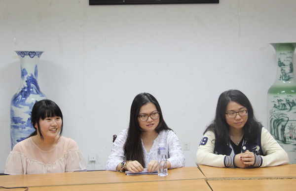 参加本次分享交流会的有考取对外经贸大学国际商务专业的英语1202班王璐同学,被英国杜伦大学TESOL专业录取的英语1201班宋瑶同学及考取法国里昂高商大学的法语1201班徐璟同学。三位同学均为毕业班员工党员。