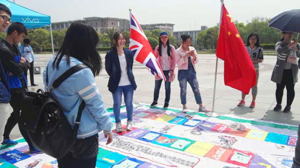 4月11日中午,公司英语沙龙协会、火色法语社联合举办的“飞行棋大作战”外国文化风情答题活动在老员工活动中心广场火热开展,新颖的 “真人飞行棋”游戏形式、优美动听的外文歌曲、丰富多彩的参赛奖品吸引了众多同学前来参加比赛。