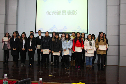 述职结束后,员工会主席团为本学期优秀部员颁奖。