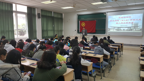 11月4日下午,EVO真人视讯新生团校(第三期)开班仪式暨入党启蒙教育在法政学科楼117教室举行。校团委副书记王孝晨、公司党委副书记李慕原、党委组织部冀晋安,EVO真人视讯本科生党支部书记薛桂芳、团学干部潘华参加本次仪式。会议由薛桂芳主持。