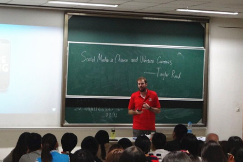 10月22日晚6:30,公司“中西方文化论坛”2015年秋季学期第三期在教C304成功举办。讲座主题为“Socical Media in Chinese and Western Countries”(社交媒体—未来商业和爱情的运作桥梁),主讲人为公司优秀美国教师Taylor Reed。