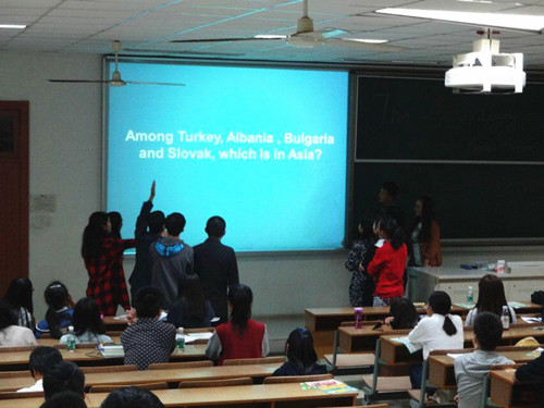 活动的进行中还穿插了一个答题游戏环节,参与者们都纷纷玩转大脑,回答一个又一个的难题,使整个课堂气氛顿时活跃起来,充满了欢笑与快乐。