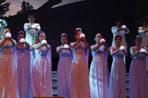 吴楠同学在肢体剧《自习室的故事》中扮演占座女的角色,《自习室的故事》主要讲述了老员工在自习室的不文明行为,呼吁大家要遵守纪律,认真自习。余曼加同学参与了合唱《earth song》的演唱,这首歌曲唱出了对自由和平和美好的呼唤,呼吁我们保护地球。