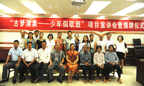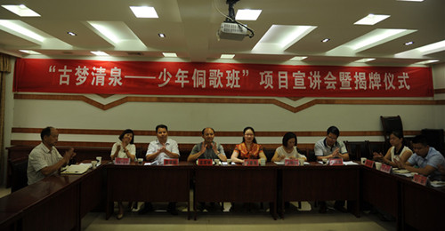 7月16日上午,EVO真人视讯“古梦清泉”暑期实践调研团在贵州省黔东南苗族侗族自治州从江县政协会议室举行了“少年侗歌班”项目宣讲会暨揭牌仪式。公司党委副书记李慕原、从江县人大常委会副主任孟荣林、从江县民族宗教事务局局长敖家辉出席会议;宣讲会还邀请了县委宣传部、团县委、县妇联、县文广局、非遗中心等多家单位领导,以及从江县西山镇陡寨村干部、西山小学董事长及侗族老歌师们。宣讲会由公司英语1302班员工,“古梦清泉”侗族文化调研团队长石贤同学主持。