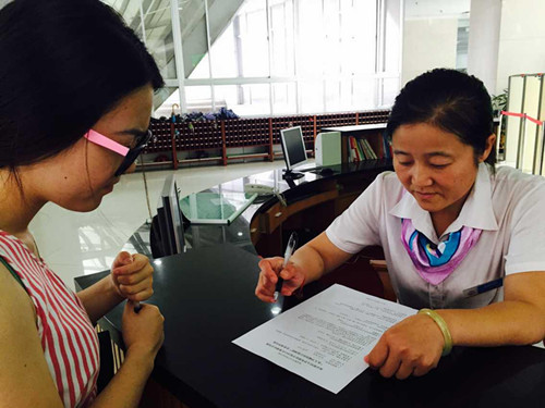 首先,队员们邀请图书馆工作人员填写调查问卷,然后在潘老师的带领下,采访图书馆参考咨询部主任安艳杰老师。