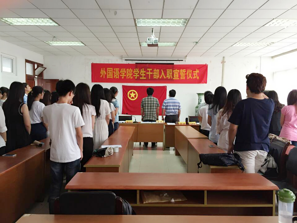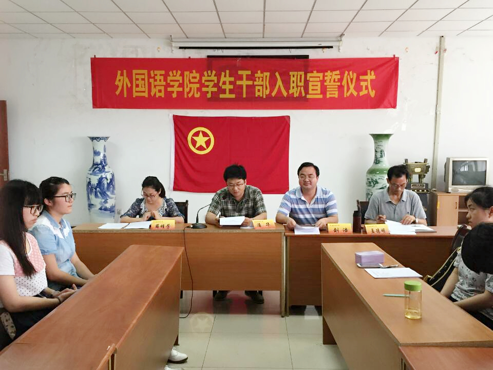 6月24日中午,EVO真人视讯员工干部入职宣誓仪式在法政学科楼308会议室举行。公司党委书记刘浩,分团委书记薛桂芳,教务秘书兼团学干部潘华,辅导员孟德明以及分团委、员工会全体员工干部出席此次仪式。入职仪式由分团委书记薛桂芳主持。