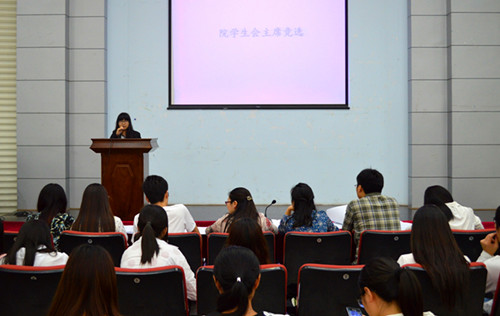 经过前期的报名,参选同学按照所报岗位依次上台进行3分钟的自我陈述,就一年来自己在团委或员工会的成长、收获和自己的优势、能力以及对未来工作的展望进行了演讲。随后评委根据各人工作表现和对工作的思考进行了提问。