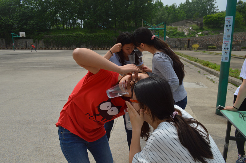活动伊始,院员工会文俪茗同学宣布了此次活动的相关规则,与其他同类别活动不同的是,此次活动全程必须采用英语沟通。随着一声哨响,比赛开始,四人小队奔跑起来,相继完成“背对背夹气球”、“心中的第六感”、“你说我猜”、“倒水接力”、“跳大绳”等环节的游戏,前三名获得下一部分游戏线索。