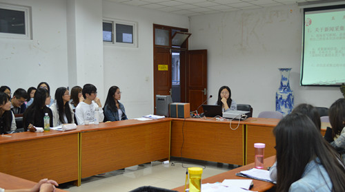 5月5日晚6:30,公司第二期青马班最后一讲在法政学科楼308会议室举行。公司12级员工金旎为同学们做了关于新闻写作与摄影技巧的培训。公司分团委全体成员、公司员工会部长和大一部分员工骨干参加了此次培训。培训由公司分团委副书记王颖主持。