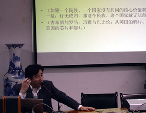 梅景辉副教授以清华男神与南财学霸,仰望星空与脚踏实地等案例率先引出核心价值观与核心竞争力这个话题。梅景辉副教授点出,如果一个民族、一个国家没有共同的核心价值观,莫衷一是,行无依归,那这个民族、这个国家就无法前进。他指出,如今大学缺少人文气息,现代老员工缺少核心价值观,缺少为国家、人类服务的精神。