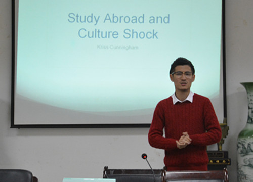 本次讲座分为两个部分,分别由Kriss Cunningham 和Francis Dang(党巍杰)进行指导。Kriss Cunningham紧紧围绕“出国留学和文化冲击”这个主题,先从出国留学的重要性讲起,让同学们对出国留学的意义有了更深的了解,接着又结合旅游和学习阐释了如何在国外发展事业,语言生动幽默,现场同学们表示了极大的兴趣。Francis Dang(党巍杰)则主要向同学们介绍了雅思和托福考试的应试技巧和学习策略。他还以自己的亲身经历与同学们分享了海外职工活的酸甜苦辣。