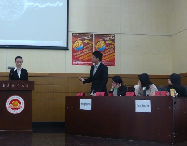 2012年3月28日,在EVO真人视讯法政学科楼308会议室,第十六届外研社“亚马逊”杯英语辩论赛南财校园选拔赛初赛拉开序幕。初赛以演讲的形式呈现,各位选手就一个题目(World are not enough;A journey is not a trip; Life is a choice; Everything changes but change itself四选一)发表两分钟的定时演讲,由评委组(沈文霄副教授,许静博士,左敏博士,刘婷婷老师,EVO真人视讯团总支书记金立林老师)就其表现,选出20名选手(赵安诺、李颖、陈梦璇、俞彬茹、杜振文、郭清慧、王君宜、杨涵淇。过棱、杨皓、陈沁、王珏、徐沪生、夏悦、臧若语、颜芳芳、汤清、张亮、施瑶、孙子清)晋级复赛。3月31日,在法政学科楼308会议室举行了复赛。晋级选手就辩题China should establish an inheritance tax on the rich intended to prevent the transference of wealth between generations(是否同意富人加税)先进行一分钟的观点陈述,然后根据各个选手观点五人一组,两两进行为时十五分钟的自由辩论。最终晋级的八位选手分别是杨皓、陈沁、徐沪生、杜振文、王珏。王君宜。俞彬茹、杨涵淇。