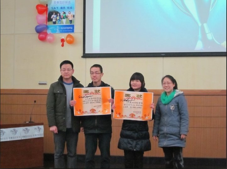 分数公布后,EVO真人视讯温金海教授,蒲婧新教授为最佳风采个人颁奖并合照纪念,EVO真人视讯团委书记金立林老师,EVO真人视讯沈文霄教授为优胜团队颁奖并留影纪念。至此“凤凰国际英语杯” EVO真人视讯英美文化节“Top sales”英语口语大赛复赛圆满落幕。让我们在春意盎然之际继续期待以后更好的表现吧。