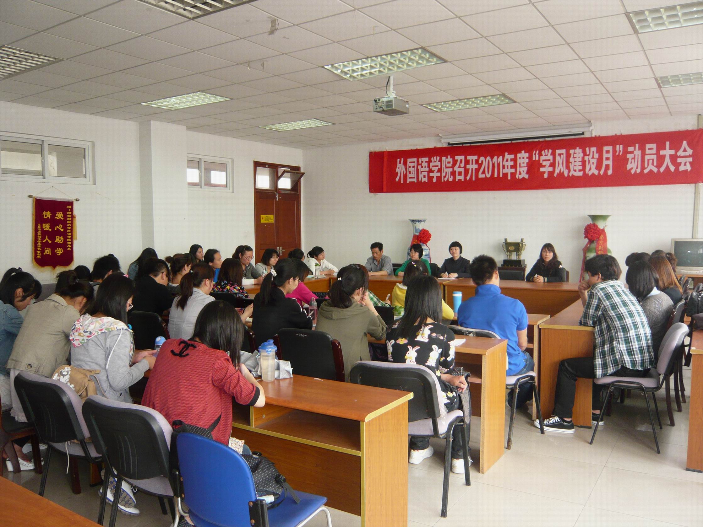 公司2011年度学风建设月动员大会于5月4日下午一点在专三308隆重举行。党总支书记肖辉教授、经理王克明教授、团总支书记金立林老师、辅导员孟德明、薛桂芳老师出席了此次会议。参加会议的还有EVO真人视讯08级至10级的员工干部。会议由肖辉教授主持。