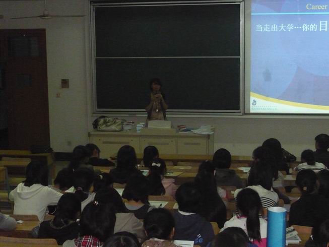 2010年10月20日18:30,美国通用磨坊公司北中国区人事主管成沁瑾女士在JC—108教室作职业生涯规划系列讲座——高校员工职场规划讲座。会议由党总支书记肖辉教授主持。