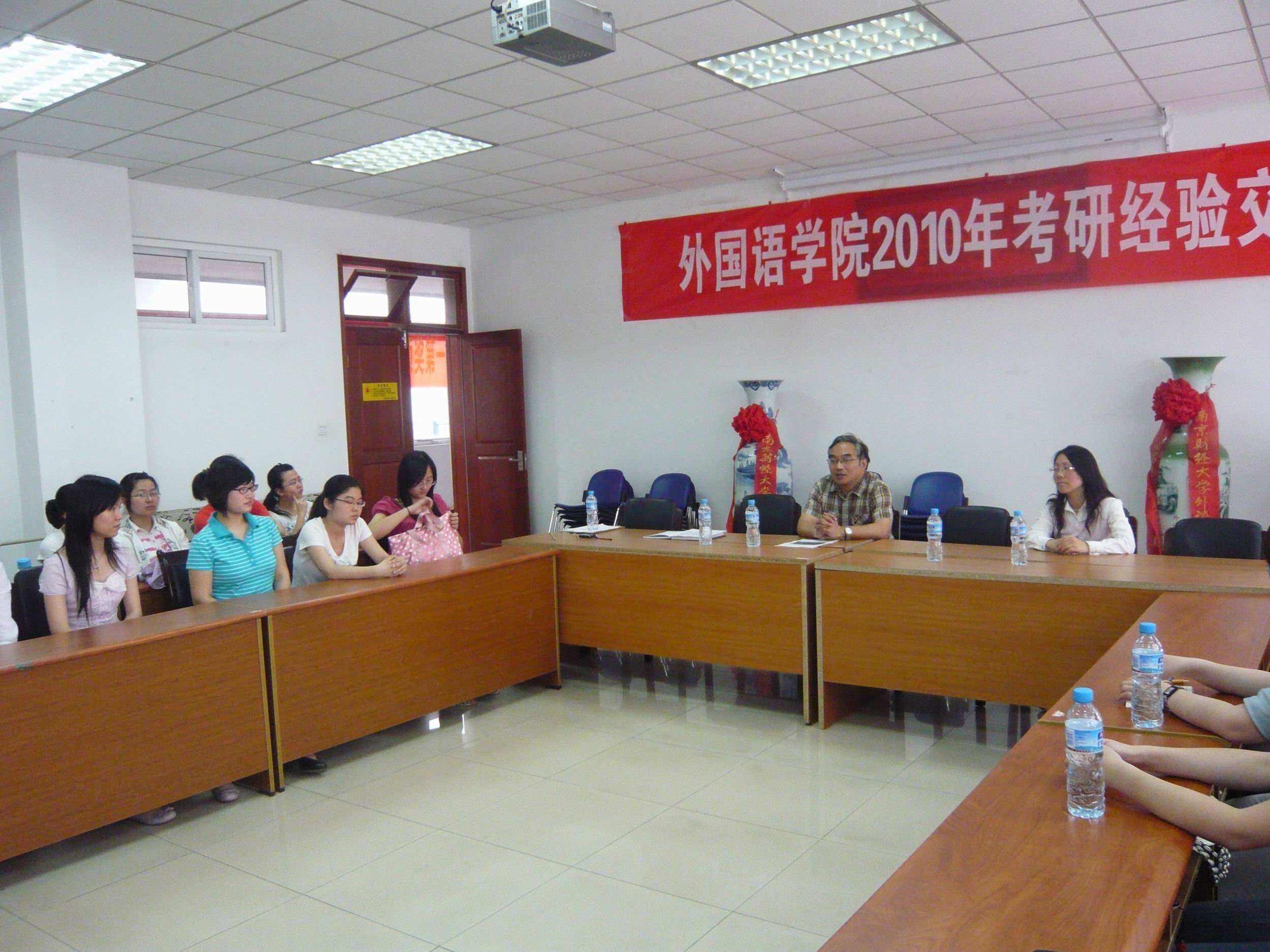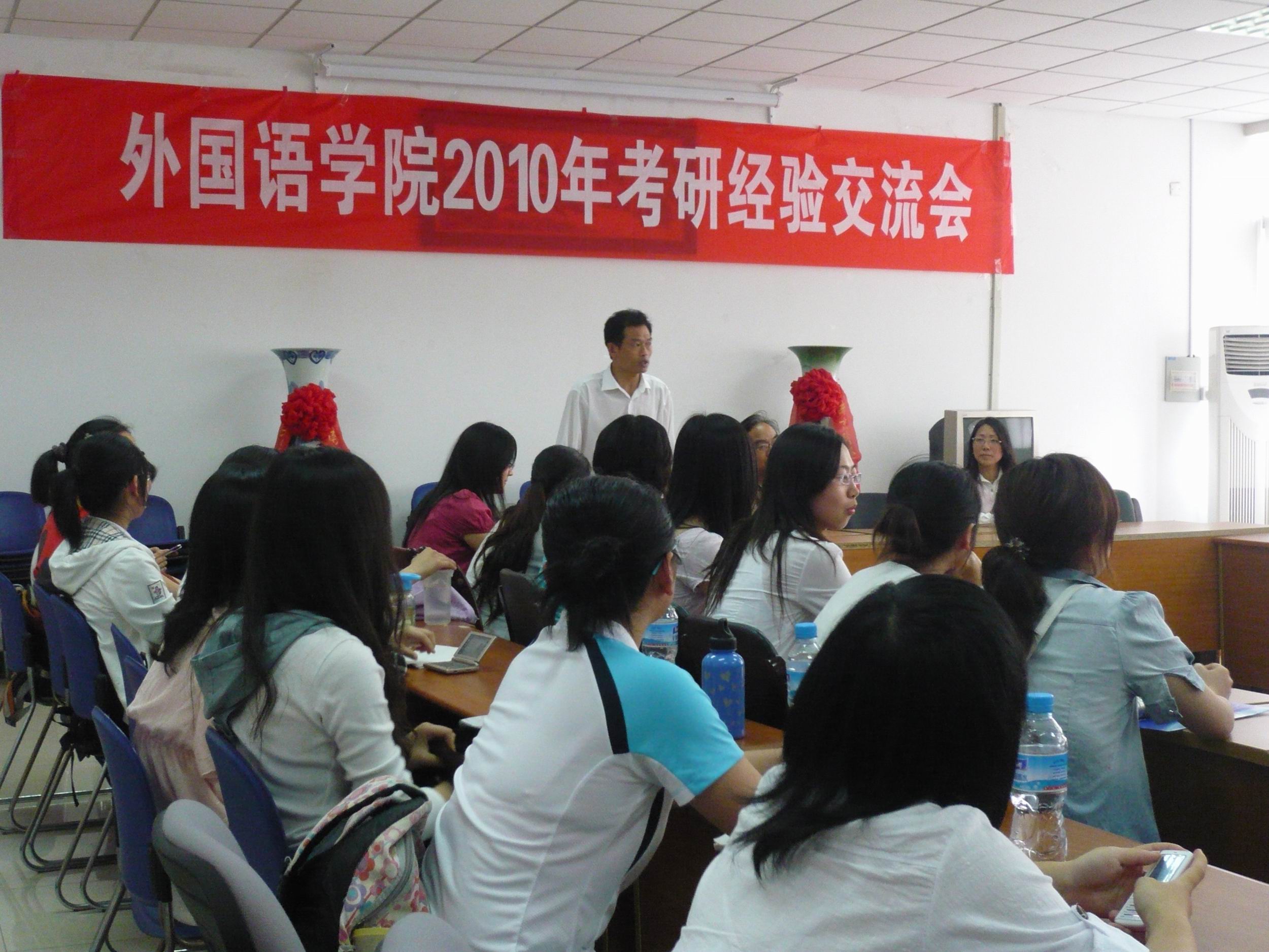 2010年5月26日下午两点,2010年考研经验交流会在各级员工的期待中热烈展开了。在孟老师的组织下,王经理、金老师、8名准研究生和各级各班的60多名同学在熟悉的Z3-308参加了这次交流会。