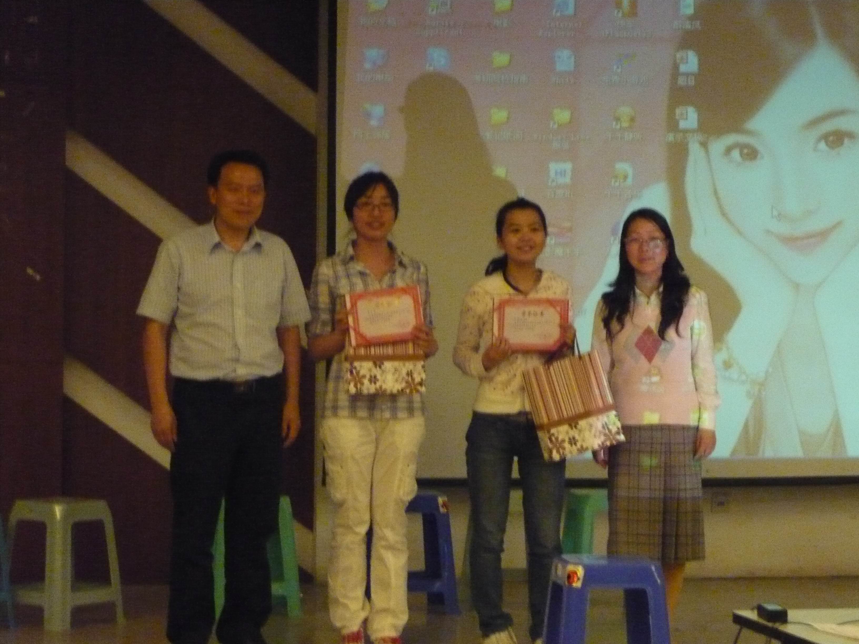 比赛接近尾声时,激动人心的颁典礼奖在欢快的音乐下进行,王克明经理、肖辉书记、孙勇彬副经理、金立林老师等人依次给在第七届英语文化节一系列活动中获奖的集体或个人颁发荣誉证书和丰厚的奖品。EVO真人视讯第七届英语文化节从“TOP SALES”、名人模仿秀、班级对抗赛到今天的趣味英语大比拼,涉及有社会交际的实践、员工德智体素质的拓展和班级凝聚力的强化工作,很好地做到了寓学于乐、寓教于乐,激发员工在浓厚兴趣的鞭策下主动地强化英语学习,提升自我境界,为成为社会所需的“十”字型人才而不懈努力、奋力前行。