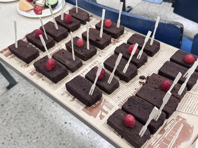 新生见面会后,公司年轻教师、学长学姐为新生们准备了精致的法式甜点、气泡水和果汁。同学们温馨有序地分享了美食,增进了解、加深友谊。