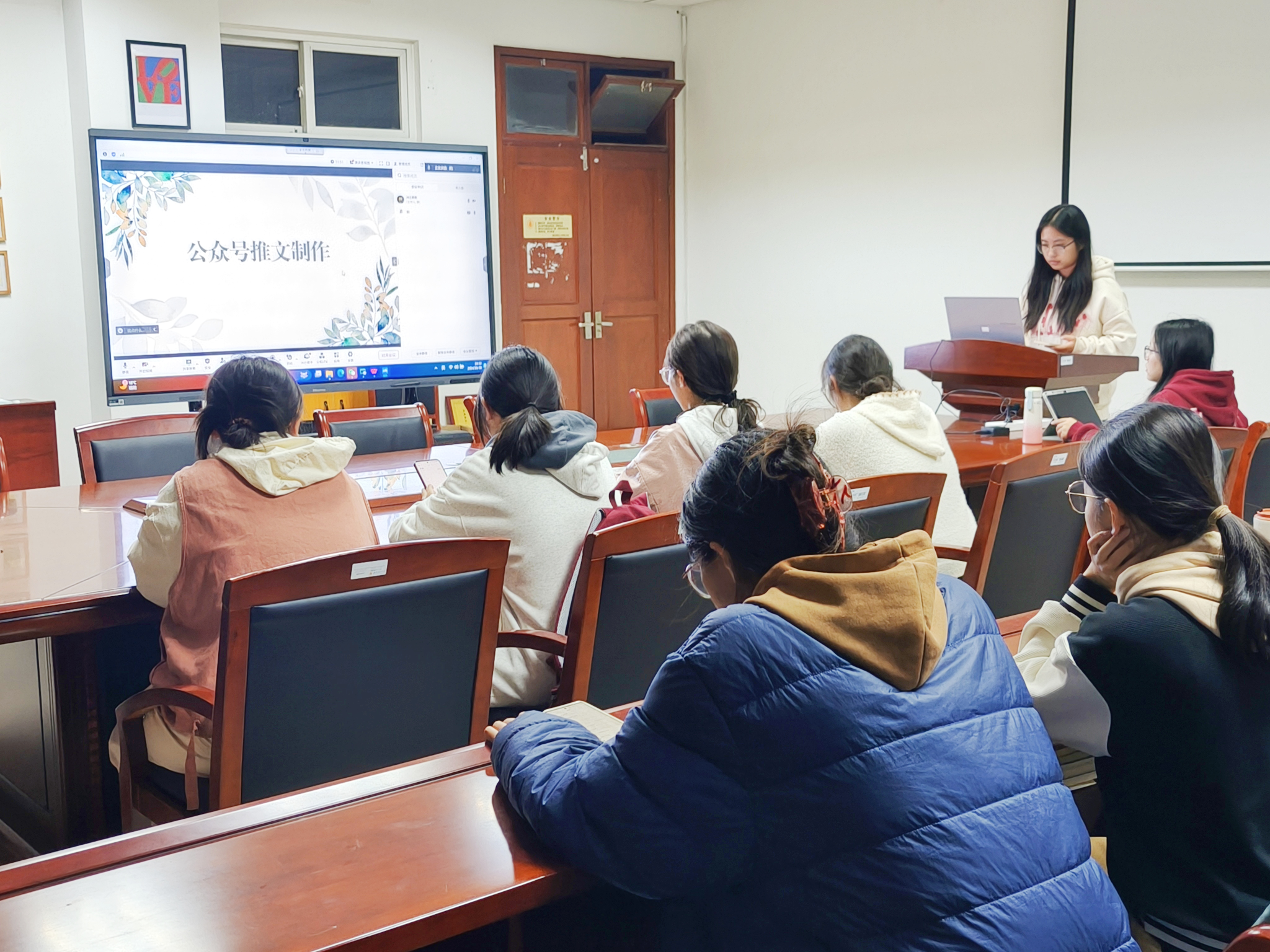 会议伊始,王思雨代表公司对徐晓阳老师表示欢迎。徐晓阳老师毕业于南京航空航天大学行政管理专业,曾在光明日报实习,曾就职于山东省电视台融媒体中心,有着丰富的新媒体运营经验。首先,徐晓阳老师从选题、文案排版、工具三个方面详细讲解了公众号推文制作相关知识。她将选题分为了公司重要活动、学工常规工作、传统节庆日等几个方面,将当下热门话题与公司特色相结合,激发联想思维,培养创作灵感,用心做推送。其次,徐晓阳老师分析了“南财外院”公众号推送中存在的问题,并以其他院校优秀案例为模板进行详细指导。最后,就如何进一步对微信推文的编辑优化分享了一些制作公众号图片的常用工具,以便我们更好地掌握推送技能。最后,大家根据日常工作中遇到的问题进行交流,徐晓阳老师全面耐心地回答了大家的问题。