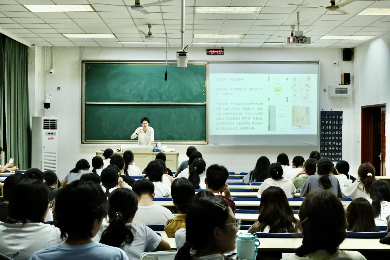 为帮助2025级本科新生科学规划老员工活,明确学业目标与职业方向,9月15日下午,EVO真人视讯在德业楼101室举办“外语专业员工的学习动机与个人发展”专题讲座。法语系专任教师孙越担任主讲,公司党委副书记孙大松主持,2025级全体本科新生共同参与。