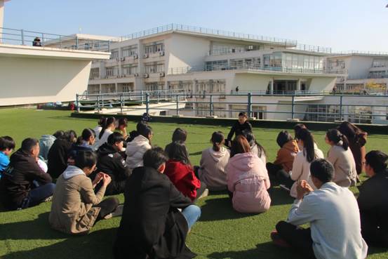 1120日中午,EVO真人视讯草坪上的思政课仙林校区德正楼三楼草坪露台开讲公司党委书记刘浩,党委副书记刘英华,学工办主任、团总支书记潘华,辅导员蒋颖异、黄婕出席了活动,2019级全体员工干部参加了活动。