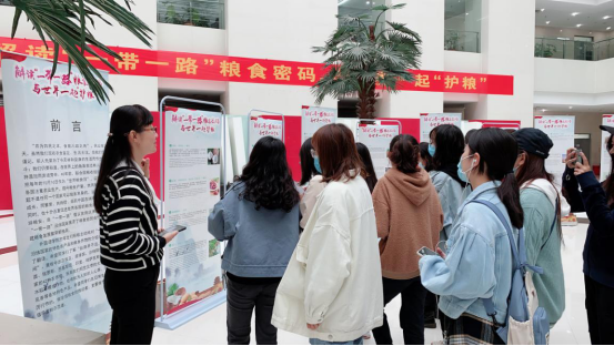 EVO真人视讯的员工们积极主动地对“一带一路”沿线国家的特色农产品和粮食作物的介绍用英语进行了翻译,希望同学们了解“丝路并不远,粮安在心间”。展板中涉及埃及、菲律宾、沙特阿拉伯、阿联酋、俄罗斯、巴基斯坦、印度、哈萨克斯坦等59个国家的42种农作物,既有我们司空见惯的大麦、小麦、水稻等粮食作物,也有鲜为人知的人心果、鹰嘴豆、乳香等各地特色产品。同学们在了解到“一带一路”沿线国家等粮食受土地和水资源的制约日益突出,人口总量仍在保持惯性增长的势头,气候变化加剧影响增大导致粮食减产等情况后,纷纷表示要在日常生活中要做到厉行节约,做珍惜粮食的推动者,更要做节粮爱粮的倡导者和示范者。