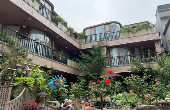 云台山是修武县美学经济的创意来源之一,如何使云台山游客感受到“美上加美”,山下民宿便成为重要载体。实践团队的第一站来到了坐落于岸上村旁的美学经济小镇。远处云台山的飘渺烟雾沿山而下,熙熙攘攘的游客在一条条云遮雾绕的小巷间穿梭。小巷的两边均坐落着一些藏在小院中的特色民宿,推开木质院门,鼻尖瞬时萦绕一股馨香,定睛一看原来是民宿主人精心培育的花草。各型各色的动物雕塑、肆意开放的夏日鲜花,别有洞天的地下楼阁,每一处设计都显露出细致的美感与情意。目光所及,皆为美学经济的硕果。