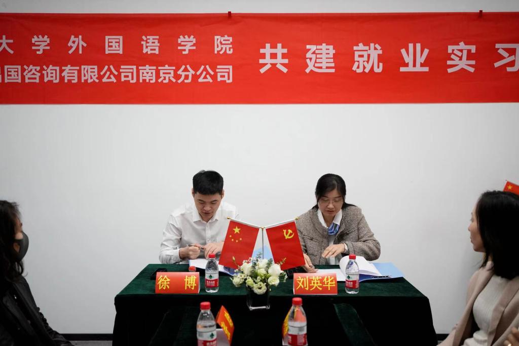 10月21日上午,公司在南京新东方建立就业实习基地,公司党委副书记刘英华、经理助理顾晓燕等5人,新东方前途出国南京分公司总经理、助理副总裁徐博,副总经理张晗,市场部副总监杨辉,仙林中心经理常晓庆参加此次授牌仪式并进行座谈交流。