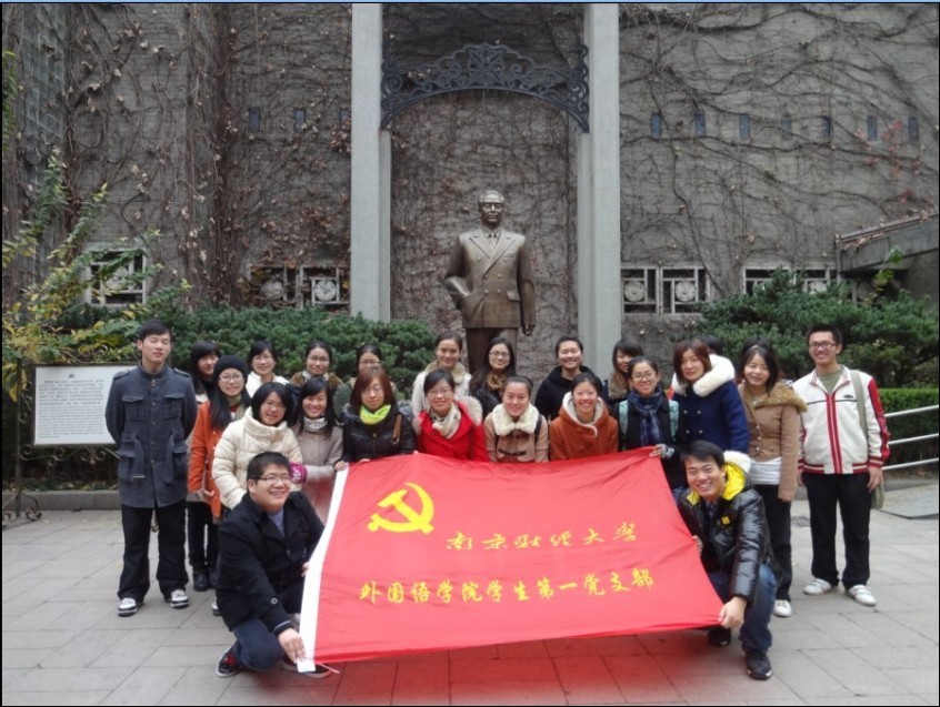 梅园新村纪念馆是江苏省重要爱国主义教育基地之一,由周恩来铜像、中共代表团办事处旧址、国共谈判史料陈列馆与周恩来图书馆等部分组成。同学们在解说员的带领下开始了参观之旅,纪念馆门口,首先映入眼帘的是矗立在正中央的周总理雕像,浓厚的古铜色渲染了革命的庄严氛围,一代伟人的崇高形象震慑人心。进入纪念馆,一座巨大的汉白玉浮雕映入眼帘,浮雕上刻有周总理在内的革命时期的7位领导和5位工作人员的头像,头像成S型,象征中国共产党革命道路的蜿蜒曲折,也昭示着中国革命前景的连绵不断。紧接着,我们参观了以《梅园风云》为主题的一系列展品:“双十协定”,制止中原内战,促使东北休战,全面内战爆发,“马司”联合调解和第三方面调解失败,革命党人在各类报刊上广泛宣传民主等。这些真实的影像和纪念物让党员们更深刻地了解到周总理领导下革命斗争过程的激烈与艰辛,也让我们更加佩服一名又一名革命烈士的英勇不凡。之后我们参观了周总理等革命者在南京工作时曾经居住和奋斗过的地方,感受到了在艰苦条件下仍然能为中国崛起而奉献自己的崇高精神。走到周总理曾住过的院子里,总理当年种下的翠柏依然挺立。仿佛在告诉我们:作为共产党人,我们要继承革命的火炬,做一个顶天立地有理想有志气的青年,为中华之崛起而努力!