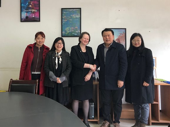 3月12日中午,英国南安普顿大学人文公司经理Sarah Pearce教授与人文艺术学部项目专员江晓玥女士来公司访问,商讨与公司建立伙伴公司以及留学项目合作事宜,国际交流与合作处黄能处长及国际处工作人员陪同两位客人来访。公司经理孙勇彬教授主持座谈会,副经理邵怡博士、英语系莫詹坤博士、胡阳博士、法语系储春花博士出席了会议。座谈会上,双方就英语、法语专业培养方案对接、学分互认、语言能力考核、职工适应能力等问题进行了详细探讨,还初步达成了建立伙伴公司关系意向。此次会谈持续了一个半小时,双方增进了了解,在多个方面达成共识,有望近期达成合作协议框架。